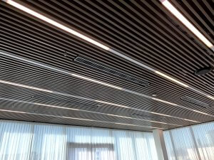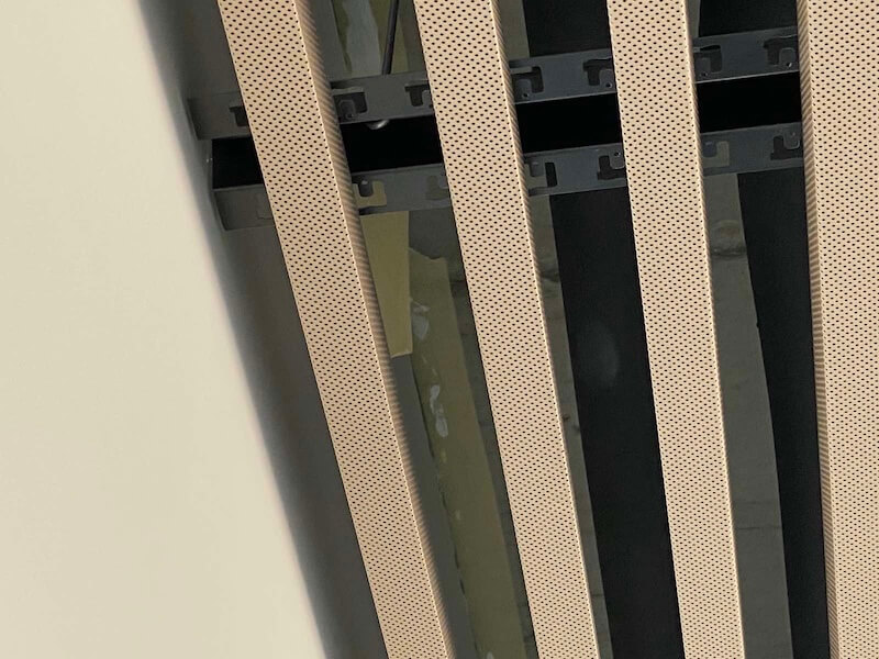 Product: Perforated strip ceiling 30×40 with acoustic fabric and wool filling