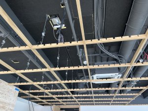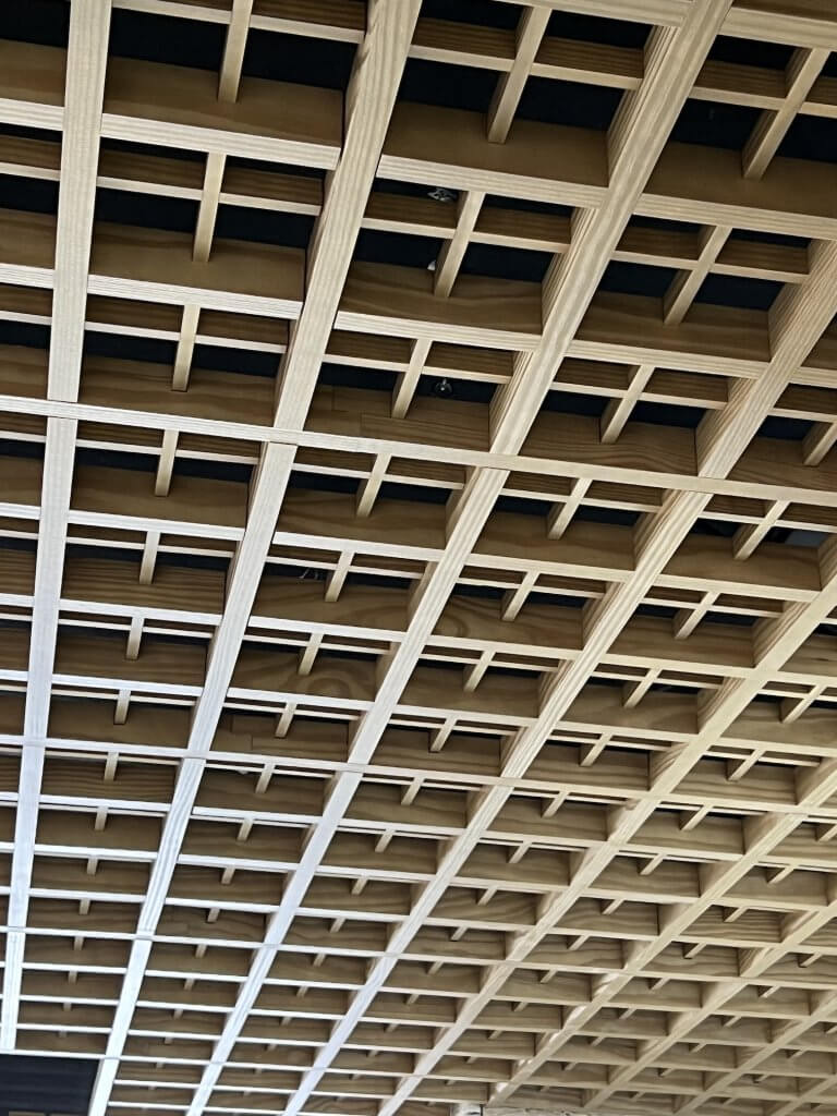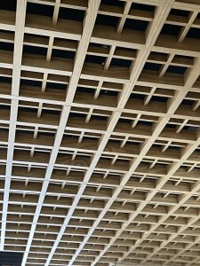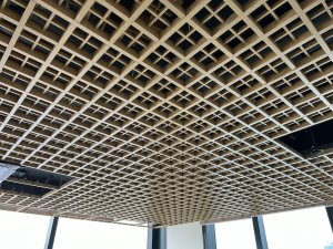 Objektas: Verslo centras Vilniuje Produktas: Medinės ažūrinės lubos Architektai: HEIMA